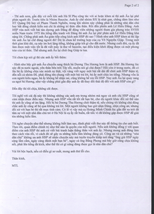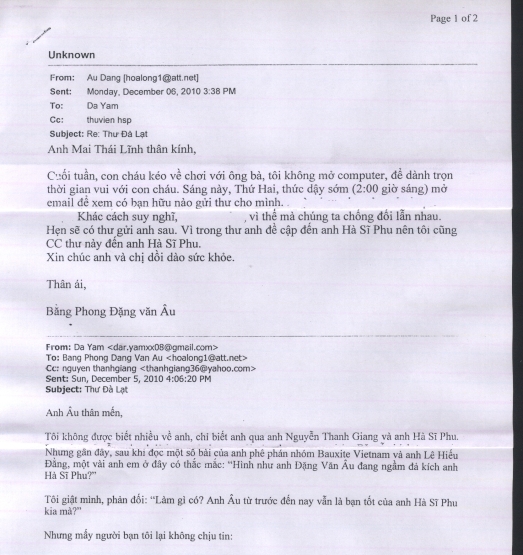 Tiếp theo, HSDC mời quý vị chứng kiến khả năng “ném đá xuyên lục địa” của Hà Sỹ Phu, thông qua Mai Thái Lĩnh để trực tiếp nhắm vào Bằng Phong Đặng Văn Âu, người bạn già “tri ân” cách nửa vòng trái đất (Mỹ) của Hà Sĩ Phu. Đây là màn “tự vệ” vụng về của Hà Sĩ Phu, HSP muốn giữ nét “đen nho” của sĩ phu, mượn tay Mai Thái Lĩnh tỏ thái độ với Đặng Văn Âu về việc Âu không nhiệt tình ủng hộ bài viết, quan điểm của HSP. Mặc dù, HSP với Đặng Văn Âu “bằng mặt không bằng lòng”, nhưng thời buổi kinh tế thị trường, vẫn phải vuốt ve, xu nịnh lẫn nhau…