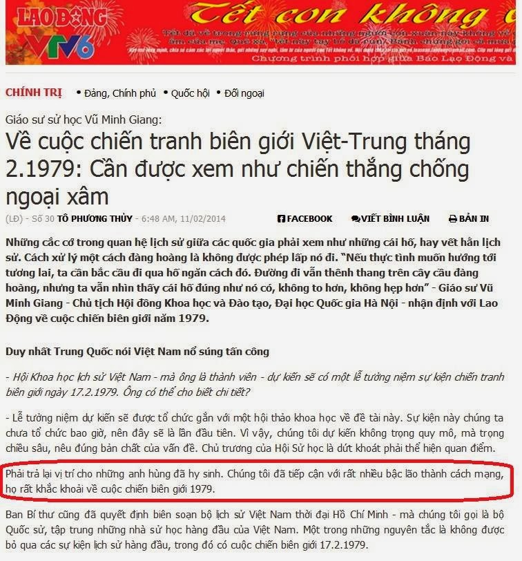 Trong thời gian gần đây, báo chí Việt lại “dậy sóng” về cuộc chiến tranh bảo vệ biên giới phía Bắc chống quân xâm lược Trung Quốc năm 1979. Ngoài sự tìm kiếm thông tin từ các tư liệu lịch sử, một số tờ báo còn phỏng vấn các “ráo xư”, “tiến xĩ”, “nhà xử học”… về sự kiện này. Nhằm câu khách, các báo đua nhau giật tít rất kêu như: “Cần tôn vinh thế hệ đã hy sinh trong chiến tranh biên giới 1979” (VnExpress), “Về cuộc chiến tranh biên giới Việt-Trung tháng 2.1979: Cần được xem như chiến thắng chống ngoại xâm” (Lao động, Một thế giới), “Chiến tranh Biên giới 1979: Không thể quên lãng” (Tuanvietnam)… Vậy phải chăng Nhà nước Việt Nam đã “quên” cuộc chiến này? Phải chăng Nhà nước Việt Nam đã “không tôn vinh” các thế hệ đã hi sinh trong chiến tranh biên giới 1979? Phải chăng chiến thắng biên giới 1979 không phải chiến thắng “chống ngoại xâm”?