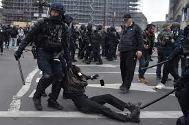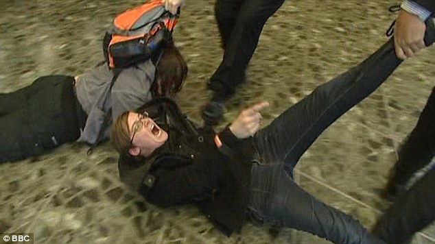 Đây là hình ảnh cảnh sát xử lý trường hợp vượt quá giới hạn cho phép tại một quốc gia tiên tiến ở châu Âu, đó là Anh Quốc. Xử lý mạnh tại chỗ tội vượt qua phạm vi an toàn, không miễn trừ phụ nữ chân yếu tay mềm mồm to: Biểu tình chống phát xít tại Trung tâm truyền hình BBC 2009