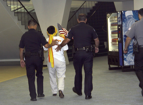 Đây là hình ảnh “Luật sư triệu dân oan” Bùi Kim Thành bị cảnh sát Hoa Kỳ còng tay dẫn đi và tống tù 2 ngày vì tội cản trở kinh doanh trong cuộc biểu tình chống Đàm Vĩnh Hưng ở Anaheim Arena – California. Các biểu tềnh vin nhớ đấy!