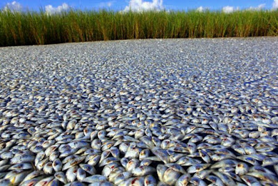 Ở một vùng ven biển bang Florida cũng vừa xảy ra một vụ cá chết hàng loạt vào tháng ba vừa rồi với số lượng lên đến khoảng 30 tấn (65 ngàn lbs). Dĩ nhiên nhật ký xuyên tạc không hay biết gì về vụ này và cũng chẳng có tổng thống hay thống đốc bang nào đến đó làm gì cả.