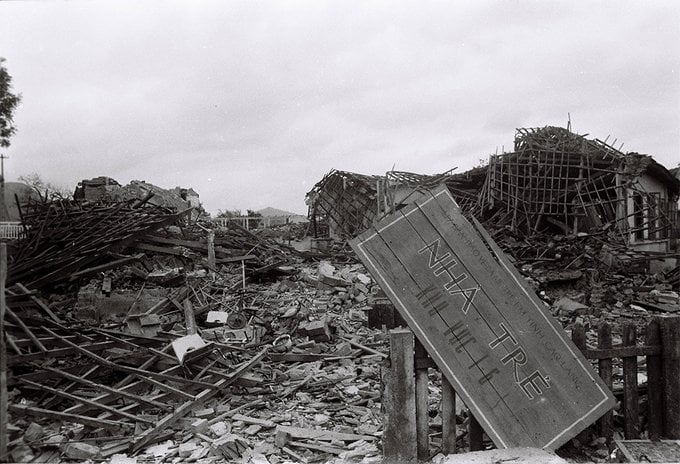 Hình ảnh thị xã Cao Bằng bị quân Trung Quốc bắn phá tan hoang (Ảnh: Trần Mạnh Thường)