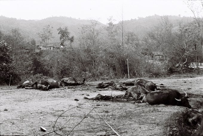 Trâu bò bị giết dọc đường quân Trung Quốc đi qua. (Ảnh tư liệu: Trần Mạnh Thường)