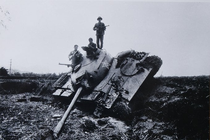 Xác xe tăng Trung Quốc bị bắn tại bản Sẩy, Hòa An, Cao Bằng. (Ảnh tư liệu: Trần Mạnh Thường)