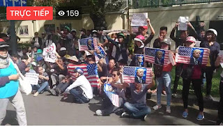 (Ảnh 02 – Người biểu tình giơ cờ Mỹ và ảnh Tổng thống Mỹ, thay vì giơ cờ Việt Nam)