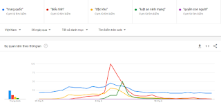 (Ảnh 05 – Biểu đồ thể hiện mức độ quan tâm mà người sử dụng Google dành cho các từ khóa trong một tháng qua)Càng cố đấm ăn xôi, thì tự họ “giúp” dân chúng nhìn ra bản thân là những kẻ không từ thủ đoạn, không màng số phận của dân chúng chỉ để chạy theo “thành tích” với ông chủ thực sự bên kia quả địa cầu mà thôi