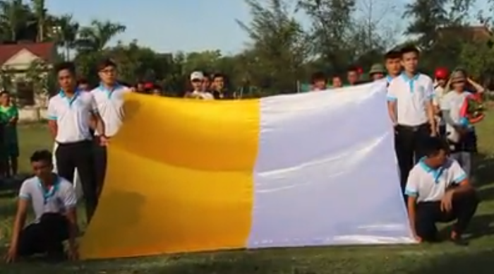 Tương tự, khi chào cờ, đáng lẽ phải chào cờ Tổ quốc (Cờ đỏ sao vàng năm cánh) thì Ban tổ chức lại cho chào cờ quốc gia Vatican.