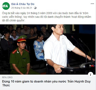 Link bài trên RFA: Đúng 10 năm giam tù doanh nhân yêu nước Trần Huỳnh Duy Thức