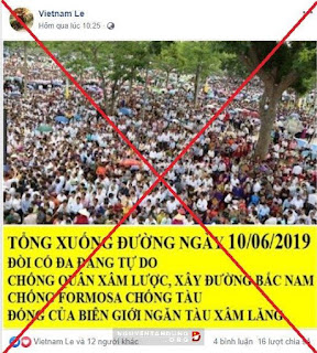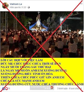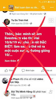 Hôm 5/6/2019, các tài khoản FB như Nguyễn Văn Thuận, Bé Yêu, Diana Hoàng, Nguyễn Huệ, và một số trang mạng của giáo dân theo đạo Thiên chúa… đã đồng loạt đăng lời kêu gọi, kích động người dân xuống đường biểu tình với đủ lý do.