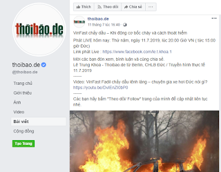 Đây không phải lần đầu Lê Trung Khoa làm cái việc đê tiện bẩn tưởi này. Xem ảnh Lê Trung Khoa đăng xe cháy lên trang Thoibao.de: