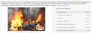 Truy nguồn bức ảnh (xem hình dưới) thì thấy, đây là một chiếc xe cảnh sát bị cháy trong cuộc biểu tình phản đối lễ khai trương trụ sở mới của Ngân hàng Trung ương châu Âu (ECB) tại Frankfurt, Đức, ngày 18 tháng 3 năm 2015.