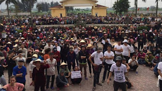 Bạch Hồng Quyền (đội mũ đeo kính đen, đứng hàng đầu) trong vụ việc tại UBND huyện Lộc Hà, Hà Tĩnh năm 2016 (Nguồn: FB).