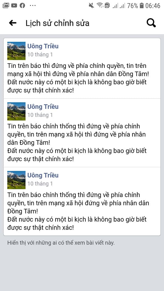 FB của ông Uông Triều đây: