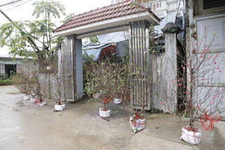 Dọc theo đường bê tông chính của xã Đồng Tâm, người ta đã mang quất, mang đào ra bán. Những chậu cúc, cành mai được bày ven đường. Cửa đình cũng đã mở…