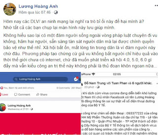 Chưa hết, trong những ngày đầu dịch Corona bùng phát, Bộ Y tế đã công khai một loạt số điện thoại nóng để người dân tiếp cận được thông tin chính thức thì chị đã nhanh chóng cập nhật số điện thoại này vào một dòng status, nhưng lại gắn link trang bán hàng online của mình vào đó. Mục đích là để người dân bấm vào đó thì họ sẽ phải vào trang bán hàng của chị. Việc làm bất lương này đã bị các Fbker mà chị gọi là DLV và An ninh mạng bóc mẽ. Hãy xem chị viết về những người đang bảo vệ lẽ phải và tố cáo chị: