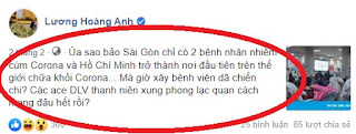 Hãy xem cách chị đá đểu chính quyền (ảnh bên), mà nói thẳng toẹt ra là chị cho rằng chính quyền thông tin sai lệch, rằng bệnh viện chữa khỏi cúm cho một người Trung Quốc là bịa: