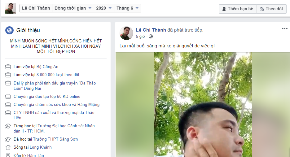 Đó là chưa kể anh này còn thường xuyên lên mạng bán hàng đa cấp. Đây cũng là hành vi vi phạm các quy định của ngành công an.Mời anh em xem một số hình ảnh từ FB của anh Lê Chí Thành: