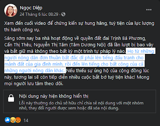 Thứ nhất, nếu bạn nghĩ nhóm bạo động ở Đồng Tâm là những người nông dân lương thiện muốn sống yên ổn, nhưng buộc phải “nổi dậy” vì bị đẩy vào thế đường cùng; xin đọc bài báo sau trên BBC:Thứ hai, nếu bạn nghĩ rằng các nhóm chống Cộng như VOICE đang giúp đỡ nông dân khiếu kiện, xin nhớ rằng chính những lời kích động của giới chống Cộng đã góp phần đẩy nhóm Đồng Tâm vào con đường bạo động, để rồi phải trả giá đắt:
