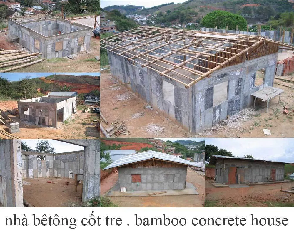 Các hình bên dưới, tuần tự cho coi cách làm nhà bê tông cốt tre, tại Nam Mỹ, South America: