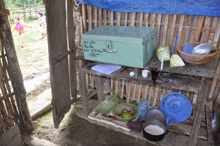 Vừa nấu cơm cô Thu vừa tâm sự: “Bữa ăn chỉ thế thôi nhà báo à. Ở đây không có chợ, cũng không có người đưa hàng đến bán nên khi ai có công việc về xuôi thì mới gửi tiền mua cá khô lên ăn. Hơn một tháng nay không có ai về nên hết đồ ăn rồi, bây giờ chúng tôi cũng chỉ biết ăn muối, lên rừng hái măng, hái rau ăn tạm qua ngày thôi”. Lên đây công tác hơn 8 năm thì cũng chừng ấy thời gian cô Thu xa gia đình. Một mình giữa chốn núi rừng, tránh sao nổi những khi rơi nước mắt vì nỗi nhớ gia đình. Lúc con đau ốm, lúc gia đình có chuyện, không làm được gì hơn ngoài những lời động viên thăm hỏi qua điện thoại. Đã có lần cô nghĩ đến chuyện bỏ cuộc nhưng rồi nỗi tủi hờn, nỗi nhớ nhung đã không thắng được lòng yêu nghề. Trong câu chuyện với chúng tôi, mắt cô đỏ hoe khi nói tới gia đình: “Chỉ mong những người trong gia đình có sức khỏe để mình an tâm công tác. Những vất vả về vật chất rồi cũng dần quen, gắn bó được ở đây vì yêu nghề thôi”, cô Thu tâm sự.