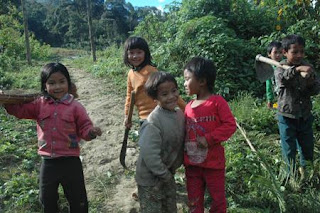 Trẻ con ở Tả Ló San vừa đến trường vừa chuẩn bị lên nương