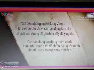 Còn như chúng tôi được phát hiện muộn hơn sau 5 năm – 10 năm – tự do quý giá, thì xin cho chúng tôi – gởi đến những người đang sống, sống đúng ý nghĩa của nó, trong một thời đại vinh quang, lời biết ơn sâu sắc vì các bạn đang làm cho cái chết của chúng tôi giữ được đầy đủ ý nghĩa. Các bạn đang lao động quên mình cũng như chúng tôi đã chiến đấu quên mình cho đất nước ta ngày nay tươi đẹp, cho dân ta ngày càng ấm no, hạnh phúc, cho xã hội ta ngày càng dân chủ công bằng.