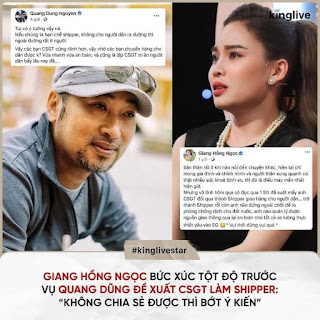 Đã có nhiều người phản ứng mạnh mẽ, trong số đó có nhiều nghệ sỹ. Mới nhất, ca sỹ Giang Hồng Ngọc đã lên tiếng bày tỏ thái độ không tán thành với phát ngôn “thiếu cẩn trọng” của đạo diễn Quang Dũng ngoại hiệu “Dũng khùng” về đề xuất CSGT làm shipper trong mùa dịch. Nữ ca sỹ còn nhấn mạnh 1 câu như muốn nhắn nhủ đến các đồng nghiệp: “Vui thôi đừng vui quá. Mình vẫn còn ăn được bữa cơm ấm cúng, yên ấm nằm trên chiếc giường mỗi ngày, không chia sẻ được thì cũng nên bớt ý kiến hơn”.