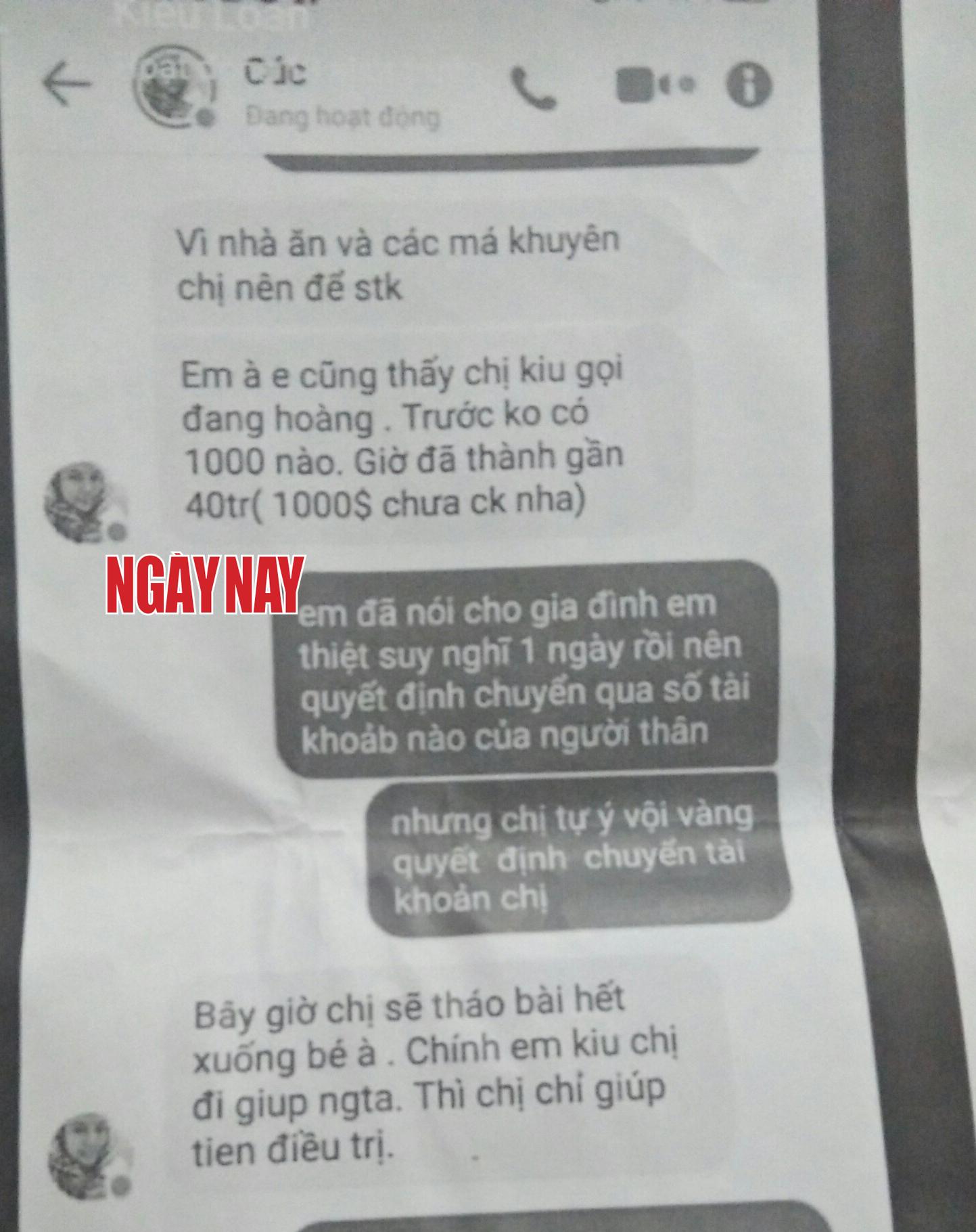 “Chính em kêu chị giúp người ta, giờ chị chỉ giúp tiền điều trị”.