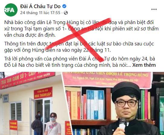 Thực tế là Lê Trọng Hùng bị bắt hồi tháng 3/2021 về tội “làm, tàng trữ, phát tán hoặc tuyên truyền thông tin, tài liệu, vật phẩm nhằm chống Nhà nước Cộng hòa xã hội chủ nghĩa Việt Nam”. Từ đó đến nay, vợ và luật sư của anh ta thường xuyên chia sẻ thông tin không đúng sự thật, không thể kiểm chứng về đối tượng với các đài phản động nước ngoài để “kêu cứu”, bằng những câu chuyện hết sức hài hước.