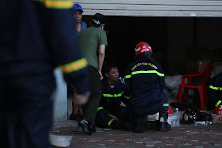 Khi các anh tới tầng 4 tìm kiếm thêm những nạn nhân khác thì các vật liệu làm trần giả, vật liệu trang trí bên trong nhà sập xuống cầu thang bộ và dẫn đến hy sinh…