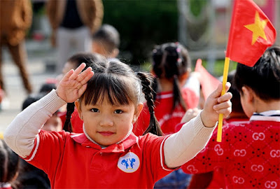 Học sinh mầm non huyện miền núi Sốp Cộp, tỉnh Sơn La thể hiện tình yêu Tổ quốc. Ảnh: VIỆT TRUNG