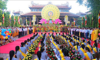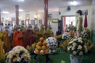 Chư tăng, hòa thượng, thượng tọa, đại đức thực hiện nghi thức tụng niệm kính mừng Phật đản. Ảnh tư liệu: Trung Kiên/TTXVN