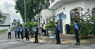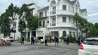 Khoảng 14 giờ phóng viên có tại khu vực Khu dân cư Nam Long. Phía trước căn nhà số A16-1 có rất đông người mặc trang phục bảo vệ có in chữ MBAMC và thường phục.