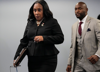 Công tố viên quận Fulton Fani Willis (trái) khi đến dự một cuộc họp báo tại Trung tâm Chính quyền Quận Fulton ở Atlanta hôm 14/8. Ảnh: AP