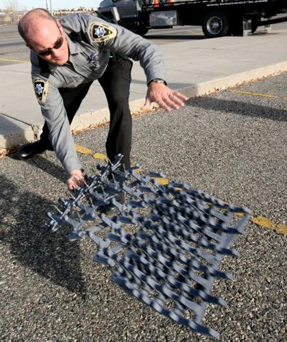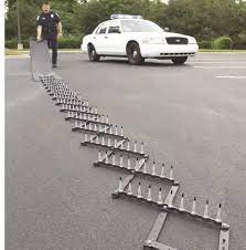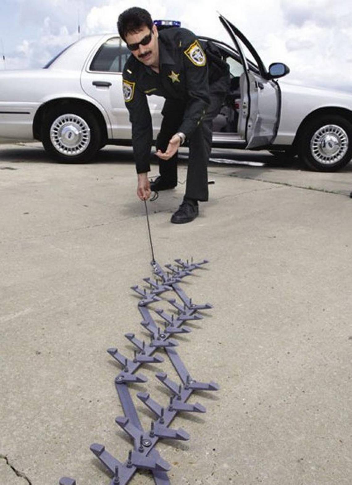 Khi nghi phạm tháo chạy, mà đa phần là ô tô cảnh sát văn minh sẽ dùng một thứ gọi là Spike strip thay vì dùng lưới phiên bản dô tá dô tà để dừng phương tiện, thưa các anh các chị. Spike strip với gai nhọn 1,5-3 inches bằng thép tôi công nghiệp, lốp xe tăng cũng nát như cám chứ đừng nói đến mấy cái xe du lịch mỏng manh.