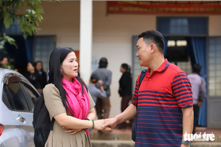 Ông Phạm Văn Khôi – phó chủ tịch UBND huyện Ea H’leo (Đắk Lắk) – thay mặt huyện xin lỗi hai giáo viên vì vội vàng kết luận họ liên quan đến “tín dụng đen”, sử dụng Facebook “gây dư luận xấu” – Ảnh: TRUNG TÂN