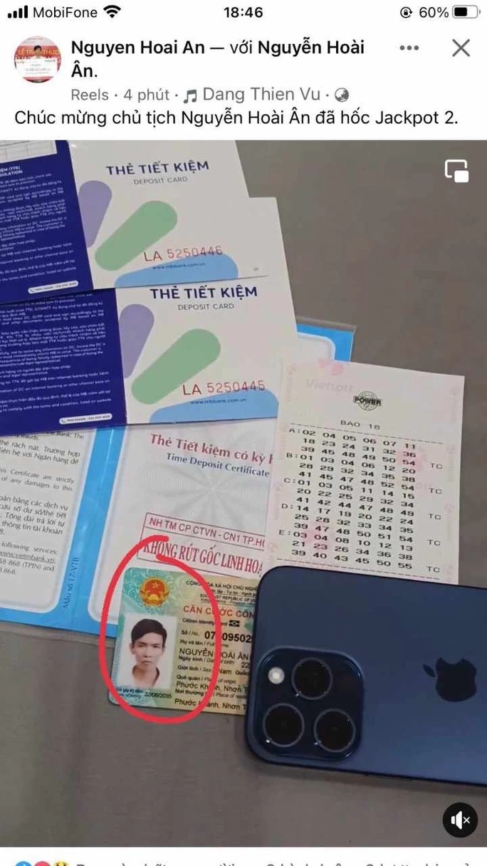 Theo thông tin trên Báo Người lao động, một tài khoản Facebook viết: “Chúc mừng chủ tịch Nguyễn Hoài Ân đã hốc Jackpot 2”. Cùng với nội dung đăng tải, trang Facebook cá nhân còn chụp hình căn cước công dân của ông Ân, một loạt vé số Power 6/55 của Vietlott trong đó có 4 vé Bao 18 (vé có 18 cặp số) và một số thẻ tiết kiệm.