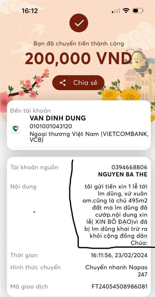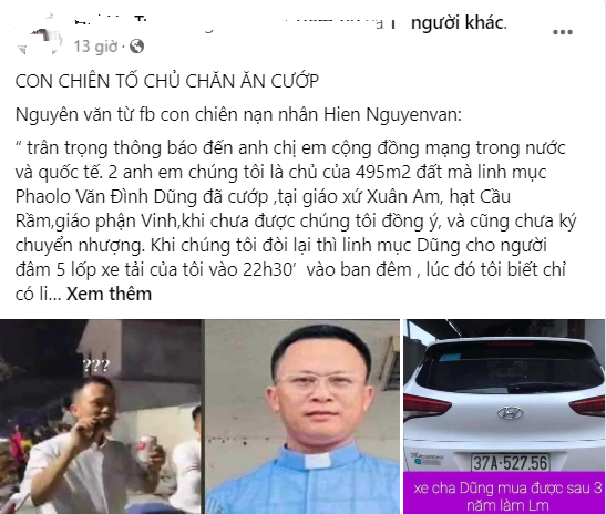 Trên mạng xã hội, một bản thông báo của người dùng có tên Hien Nguyenvan đã gây chấn động khi đưa ra thông tin về việc chủ nhân của 495m2 đất tại giáo xứ Xuân Am, hạt Cầu Rầm, giáo phận Vinh, bị một linh mục là Phaolo Văn Đình Dũng tố cáo đã cướp đoạt trái phép.