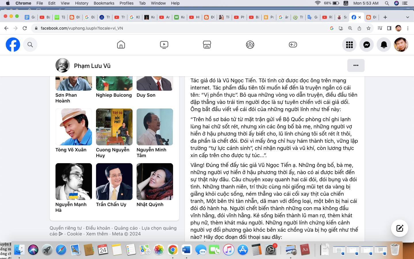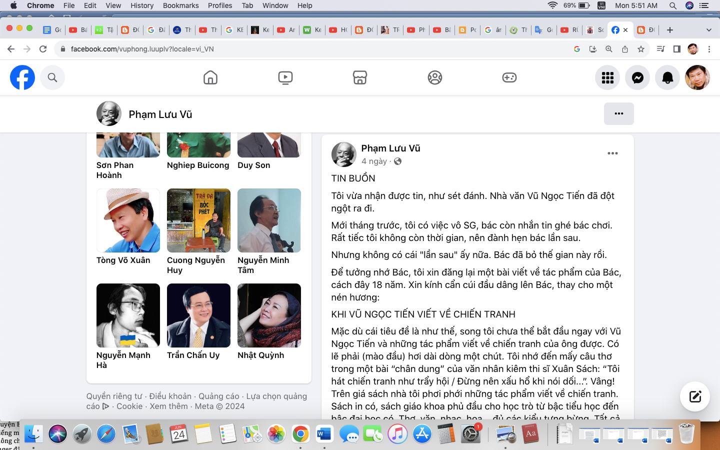 Trên FB, sau khi đăng TIN BUỒN “Nhà văn Vũ Ngọc Tiến đã đột ngột ra đi”, Phạm Lưu Vũ, như tôi viết ở bài trước, đã “cực kỳ bất nhân” khi đăng bài KHI VŨ NGỌC TIẾN VIẾT VỀ CHIẾN TRANH, “đã vạch áo “huynh” Vũ Ngọc Tiến” cho thiên hạ xem lưng”.