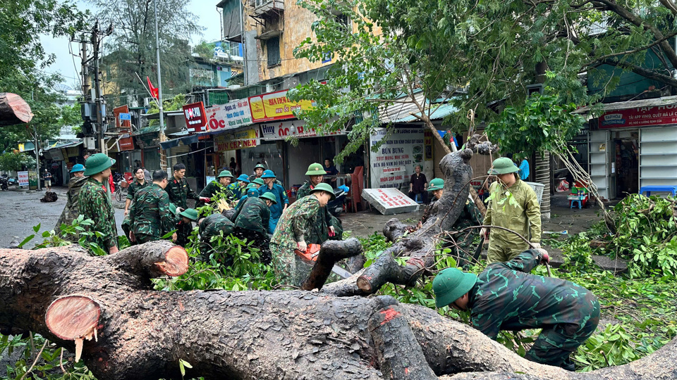 Sau cơn bão, không chỉ các cấp lãnh đạo mà toàn bộ hệ thống chính trị và người dân Hà Nội đã ngay lập tức bắt tay vào công việc khắc phục hậu quả. Các cán bộ, công nhân viên chức của các ban, sở ngành không quản ngại khó khăn, bắt đầu ngày mới bằng việc dọn dẹp, sửa chữa và hỗ trợ người dân. Đặc biệt, lực lượng công an, quân đội, và các lực lượng làm nhiệm vụ bảo vệ an ninh trật tự ở cơ sở đã túc trực, làm việc xuyên đêm. Họ không chỉ đảm bảo an toàn cho người dân mà còn tham gia dọn dẹp đường phố, cứu hộ cứu nạn tại những khu vực bị ảnh hưởng nặng nề nhất.