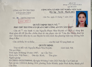 Theo cơ quan cảnh sát điều tra, sau khi lừa đảo 16 tỉ đồng, Nguyễn Phạm Như Huỳnh đã trốn khỏi địa phương và bị Công an TP Cần Thơ ra quyết định truy nã đặc biệt