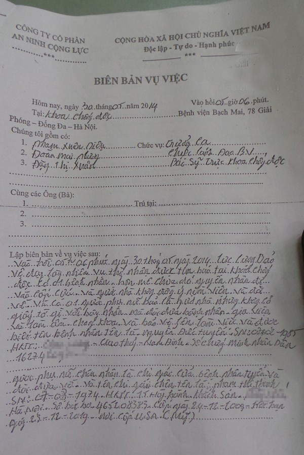 Bản tường trình của chị Th. tại Bệnh viện Bạch Mai. Ảnh: Trí thức trẻ