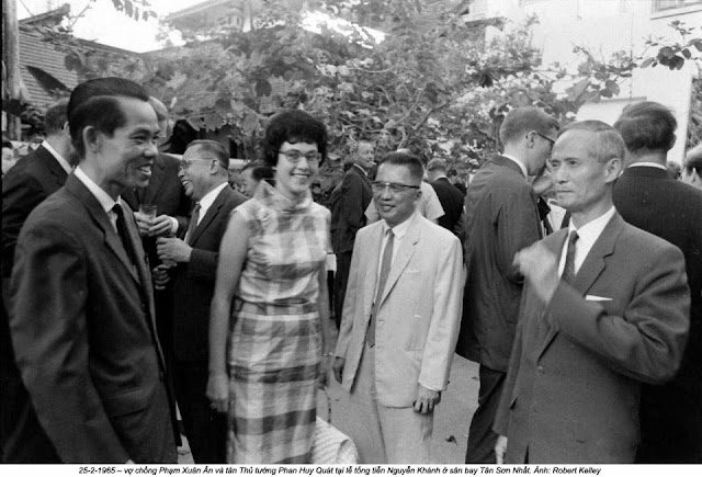 Ngày 25/2/1965- vợ chồng ông Phạm Xuân Ần (trái) và Tân Thủ tướng VNCH Phan Huy Quát tại Lễ tống tiễn Nguyễn Khánh ở sân bay Tân Sơn Nhất. Ảnh Robert Kelley