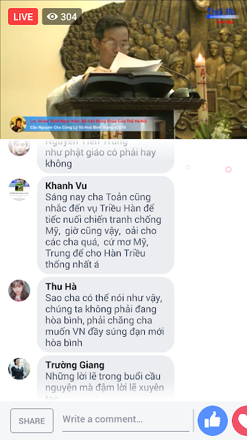 Kính mời quý độc giả xem các bức ảnh chụp màn hình buổi lễ Công lý và Hòa Bình ngày 29/4/2018 được TRUYỀN THÔNG THÁI HÀ phát trực tiếp trên mạng và so sánh với những bức ảnh sau đây sẽ thấy rõ thủ đoạn của họ. Do bị xóa nên một số bình luận của họ vừa ngây ngô vừa lộ liễu không khác gì “vạch áo cho người xem lưng”