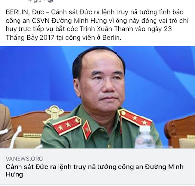 Mấy ngày nay, trên mạng lại dẫn nguồn tin từ VANEWS và 2 trang tin điện tử loại vỉa hè ở Đức là Thoibao.de và Taz.de nhai lại luận điệu rằng: Đức truy nã quốc tế tướng tình báo Đường Minh Hưng; Phát hiện liên lạc từ Đức với số máy ông Tô Lâm Bộ trưởng Bộ Công an. Không ít người, trong đó có cả cán bộ, đảng viên chia sẻ những thông tin này khiến dân chúng hoang mang.