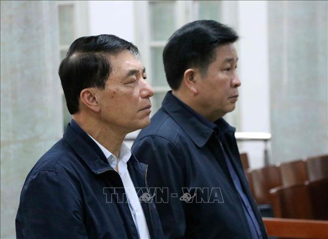 Bị cáo Bùi Văn Thành (bên phải), cựu Trung tướng, Thứ trưởng Bộ Công an và bị cáo Trần Việt Tân (bên trái), cựu Thượng tướng, Thứ trưởng Bộ Công an tại phiên tòa. Ảnh: Văn Điệp/TTXVN