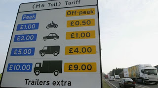 Bảng giá phí giao thông trên xa lộ M6 ở Anh gần Birmingham hồi 2003