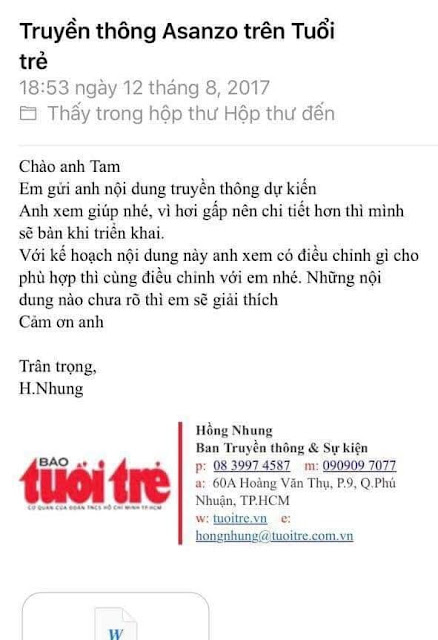 Nếu Asanzo sai, chịu sự trừng phạt của pháp luật, chịu phá sản, chấp nhận thôi. Nhưng nếu Tuổi Trẻ sai, Tuổi Trẻ sẽ chịu trách nhiệm thế nào với Asanzo, với hàng ngàn người lao động, với hàng triệu sản phẩm của Asanzo đang nằm trong biết bao gia đình?
