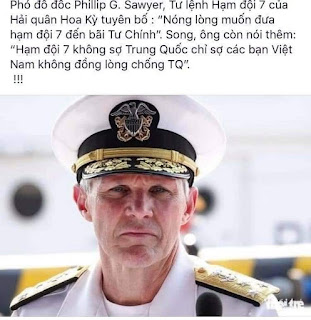 Nói thẳng, đây là thông tin ất ơ nhưng xây dựng có chủ đích theo lối nói nhét chữ vào mồm thằng khác.Tay Phó Đô đốc Phillip G. Sawyer đã không nói trong clip, mà thay vào đó lời người đọc, lồng vào đó là ý tứ ám chỉ người Việt không đồng lòng chống Trung Quốc. Ý của những kẻ làm clip này là gì, hẳn các anh chị quá hiểu.