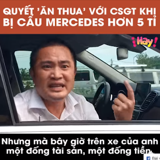 Khi thấy CSGT xuất hiện, anh lái xuống xe, chuồn thẳng. Anh tóc ngắn còn lại quyết tâm bám trụ, một tấc không đi, một ly không dời, ngồi ì trên xe. Anh dùng môn khẩu chiến và quyết đéo xuống xe cho dù CSGT van vỉ cạn lời. Lý do anh đưa ra là xe của anh đắt tiền, trong xe có nhiều tiền và tài sản. Hehe, anh nói: “Cái xe của anh nó là 5 tỷ 2… Tài sản của anh một đống đây, em bảo anh xuống xe anh xuống làm sao được”. Anh này cũng đéo chịu xuất trình giấy tờ và nói “Anh theo các em cẩu về cơ quan công an. Nhưng trên xe có người là các em không cẩu được”.